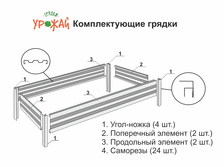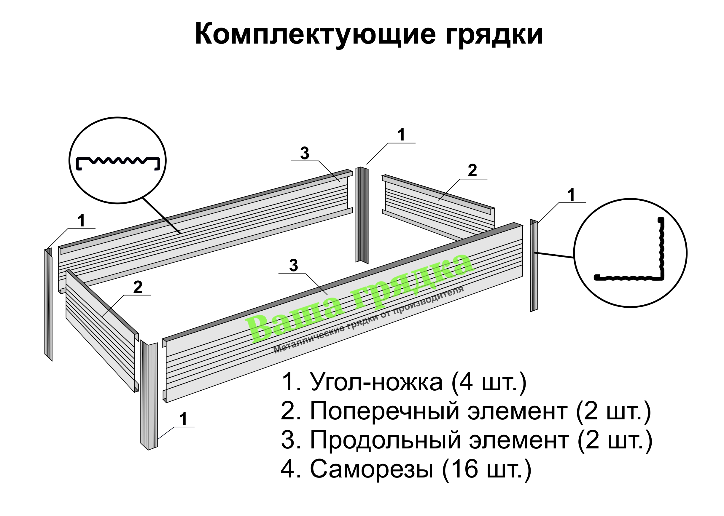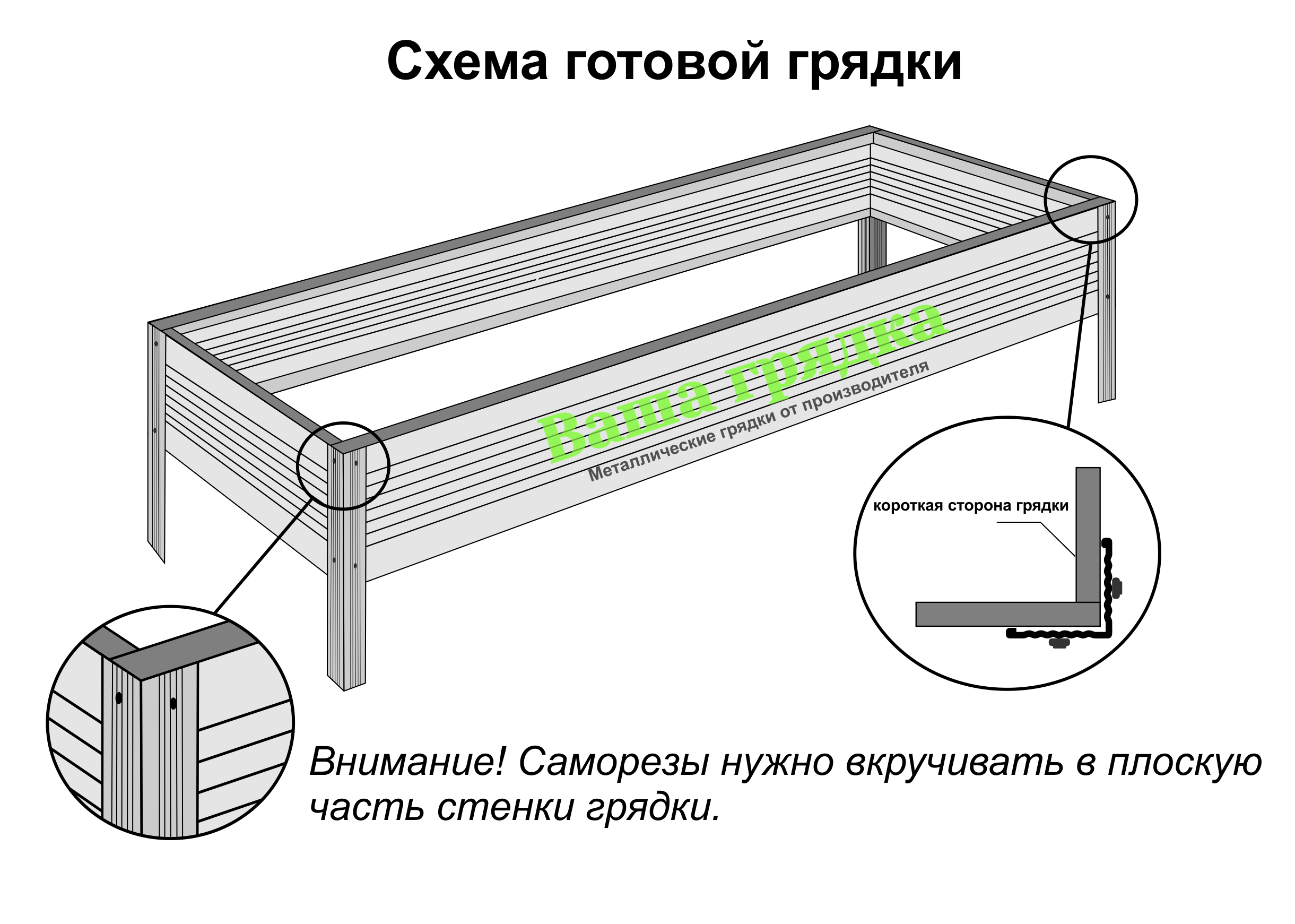 Грядка собирается за 20 минут с помощью шуруповёрта или отвёртки по прилагаемой инструкции и не требует специальных навыков. Нет необходимости приглашать для монтажа специалиста. Экономия на сборке!